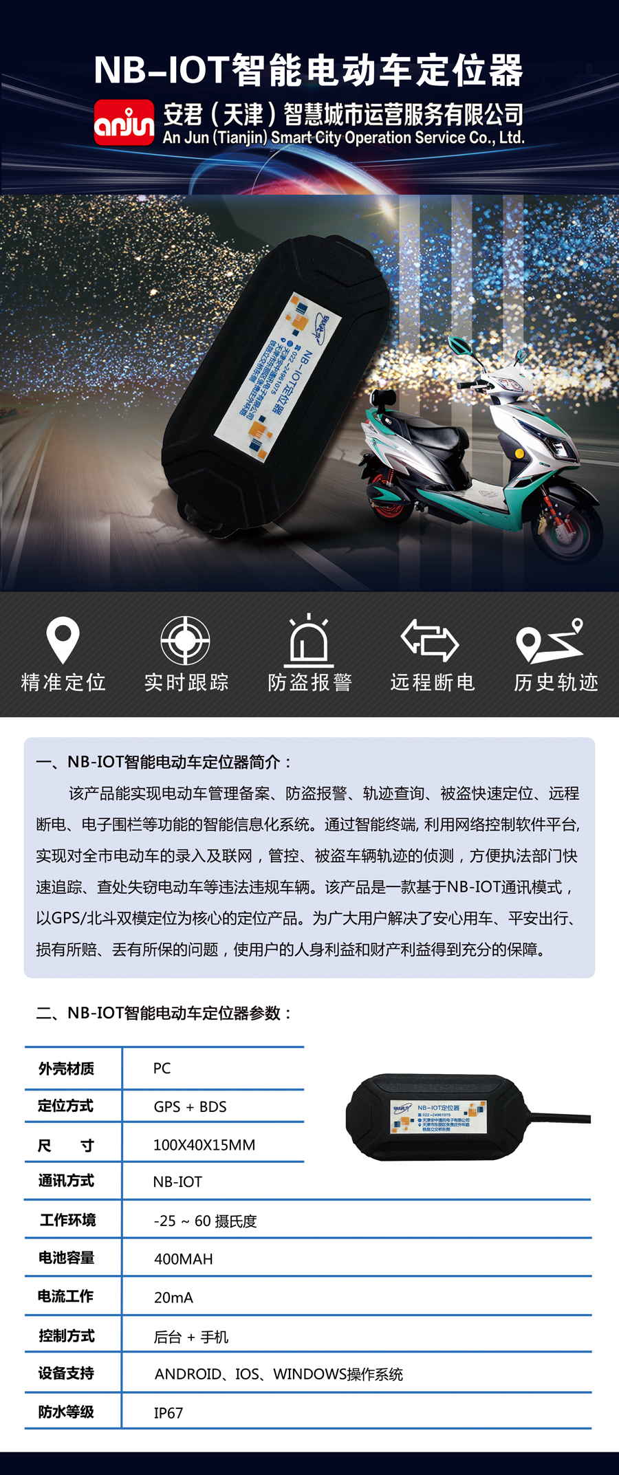 NB-IOT智能电动车定位器