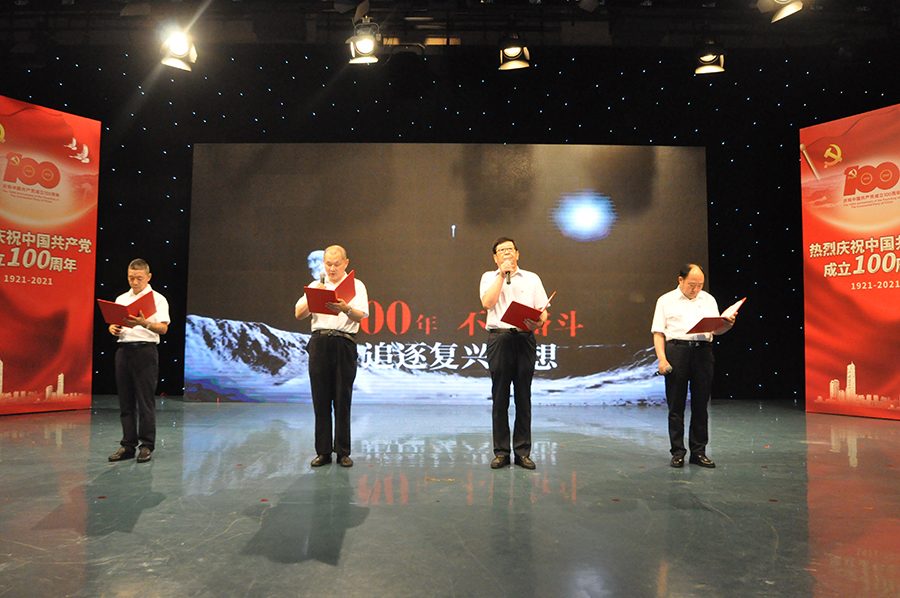 安达集团党委书记、董事长崔洪金带领集团部分党员参加此次活动。并以工商联会员企业党委委员身份参演了经典诵读《永远跟党走》,声情并茂、慷慨激昂,传播着百年党史红色经典作品的独特魅力,触动着每一位观众的心弦,赢得现场阵阵掌声。