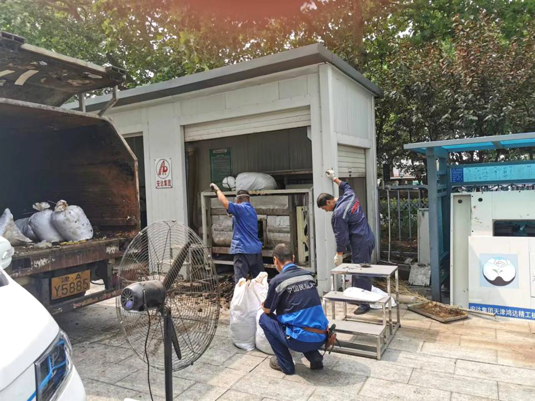 7月5日,在厨余垃圾处理设备例行检查中,售后服务人员发现位于西青区政府院内的设备处于停止状态,设备内装满未经处理的厨余垃圾,立即向西青区城管委报告。由于设备所处位置的特殊性,7月14日13:00才能开始清理作业,当天务必完成。用户需求就是我们的命令,公司周密部署,提前做好有毒有害作业预案,安排精干人员、配备防护服、防毒面具等安全防护用品,确保圆满完成这次任务。